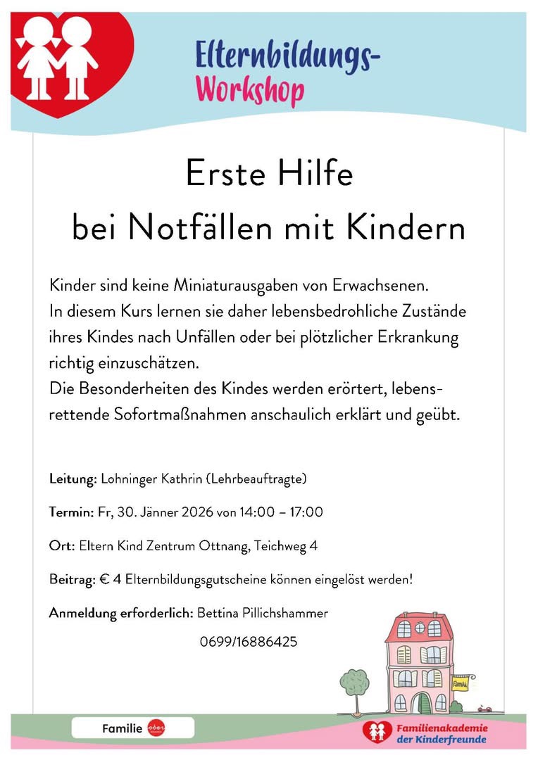Erste Hilfe bei Notfällen mit Kindern – Anmeldung erforderlich